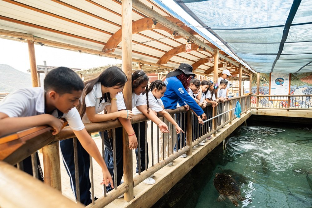 El programa de visita de estudiantes de colegios se desarrolló con el propósito de fomentar el aprendizaje, la conciencia ambiental y el interés por la conservación marina. Durante las jornadas, los estudiantes participaron en diversas actividades que incluyeron dinámicas educativas, charlas breves, exhibiciones científicas y material visual, las cuales facilitaron la comprensión de la importancia de los ecosistemas marinos. Estas experiencias fortalecieron la conexión entre la comunidad estudiantil y los procesos de conservación marina, promoviendo valores de responsabilidad ambiental y participación en el cuidado del medio ambiente.